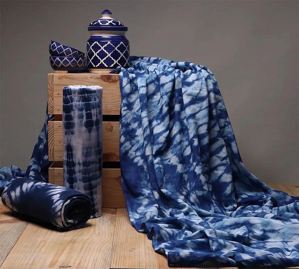 Organic Dark Blue Tie Dye Indian Pure Cotton Fabric